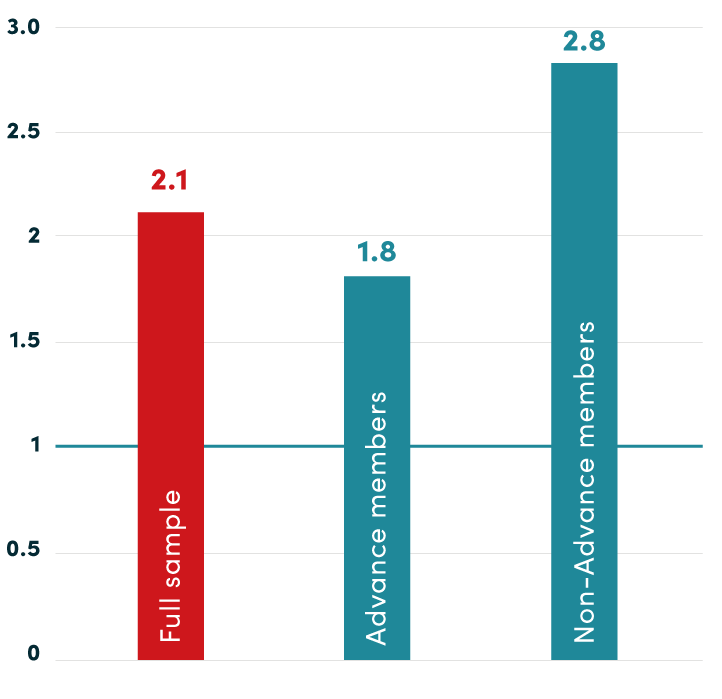 Chart: Glass Ceiling Index of Advance members compared to non-member companies.