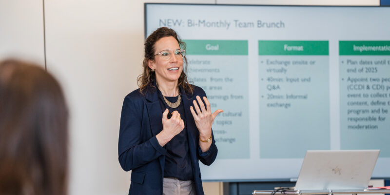 Mir war klar, dass ich nicht alles umkrempeln wollte. Viele Aufgaben machten mir weiterhin Freude, und mein Team ist mir sehr wichtig. Gleichzeitig bietet unsere Arbeitskultur eine gewisse Flexibilität, Aufgaben neu zu verteilen – und da eine Kollegin kürzlich das Unternehmen verlassen hatte, ergaben sich genau zu diesem Zeitpunkt neue Möglichkeiten.